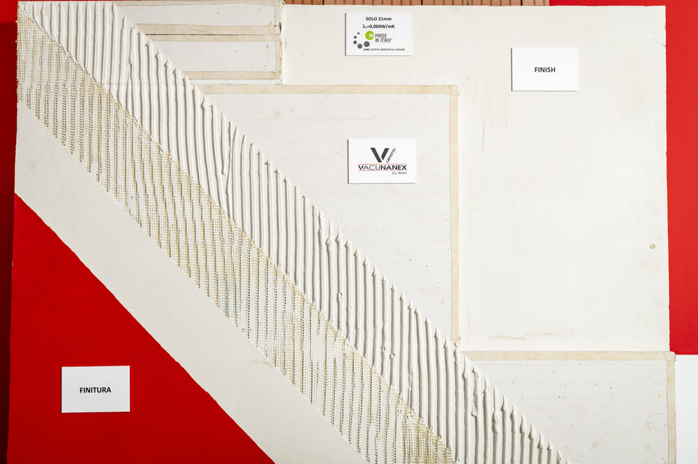 Pur mantenendo uno spessore molto basso, il sistema Vacunanex offre un potere isolante enorme, con un lambda di 0,004W/mK. Riesce a isolare come un tradizionale sistema a cappotto, ma la massa del materiale consente di concentrare tutto in 10–20 millimetri.