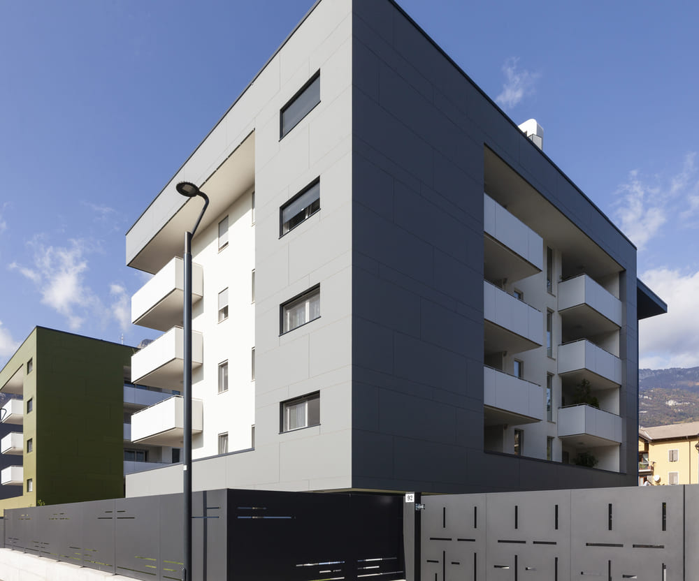 La residenza Al Vigneto è composta da cinque palazzine, realizzate tra il 2020 e il 2024, rivestite in facciate ventilate con pannelli Hpl. Prodotti da BF, i pannelli sono durevoli, resistenti agli agenti atmosferici e mantengono inalterati nel tempo colore e prestazioni.