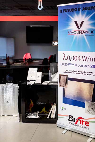 Un materiale isolante innovativo, ingombri ridotti al minimo, elevate prestazioni certificate e una posa facile e di rapida esecuzione. Tutto questo è Vacunanex Cappotto, il sistema prodotto interamente in Italia da Bifire, azienda di Desio (Monza Brianza) per l’isolamento termico di pareti e solai, sia interni che esterni.