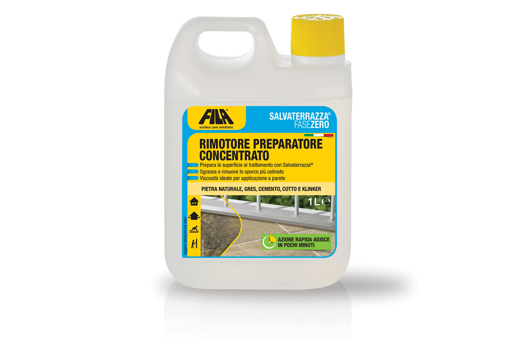 – Prepara le superfici al trattamento protettivo consolidante SalvaTerrazza, sgrassando e rimuovendo lo sporco più tenace.