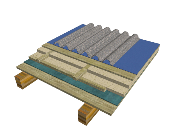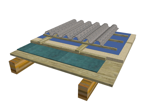 - una ventilazione vera e propria, spesso utilizzata per coperture aventi limitata pendenza, che prevede la costituzione di questa intercapedine costituita da listelli in legno di spessore variabile, solitamente 4÷6 centimetri e più, tra lo strato di pannelli adibito ad isolamento termico ed un tavolato ligneo di supporto dell’impermeabilizzazione e del rivestimento esterno soprastante.